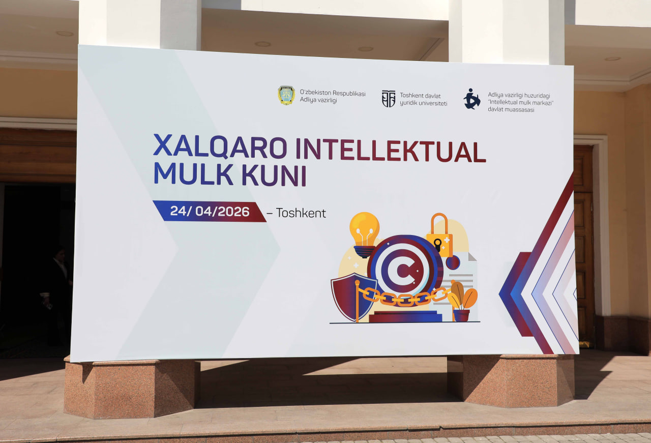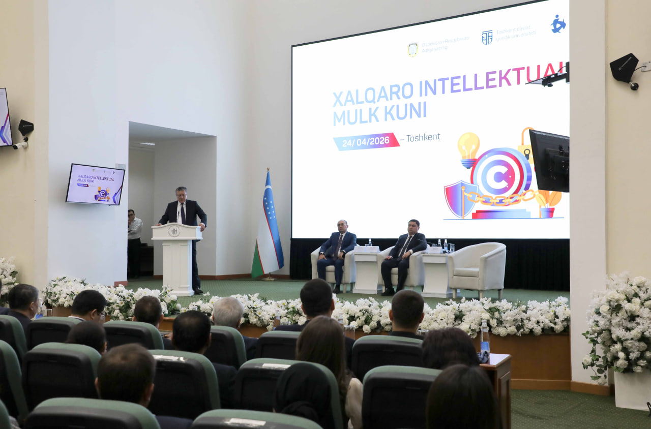 2026-yil 24-aprelda Toshkent davlat yuridik universitetida 26-aprel – xalqaro intellektual mulk kuniga bag‘ishlab “Raqamlashtirish sharoitida intellektual mulk huquqining rivojlanish tendensiyalari” mavzusida ilmiy-amaliy anjuman bo‘lib o‘tdi.