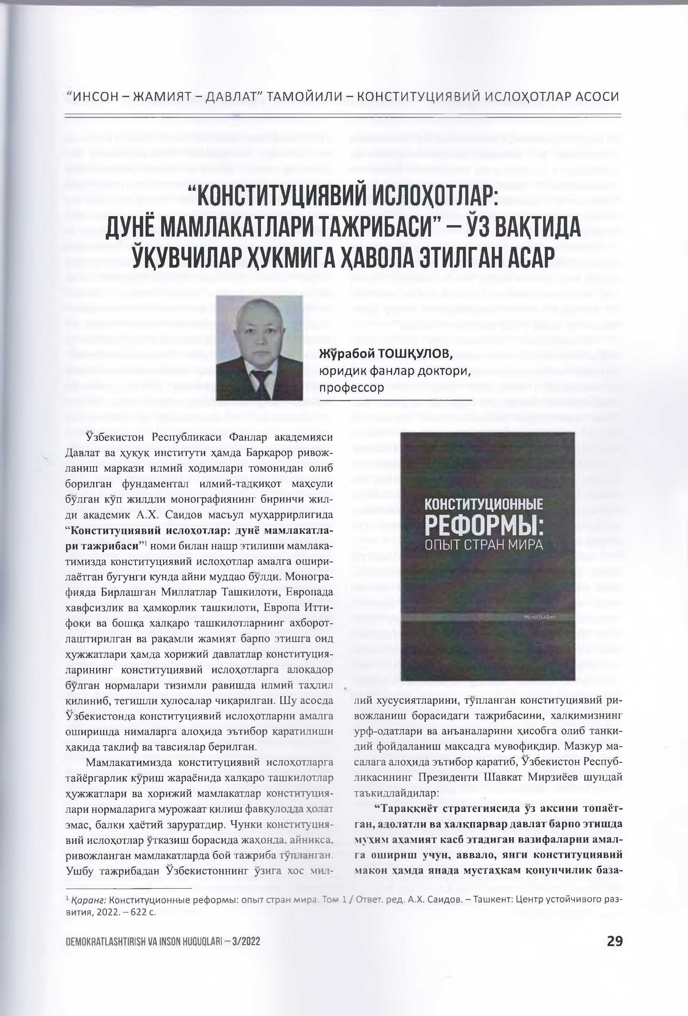 “КОНСТИТУЦИЯВИЙ ИСЛОҲОТЛАР: ДУНЁ