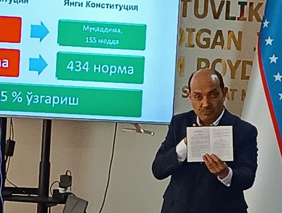 Mazkur tadbirda O‘zbekiston Respublikasi Fanlar akademiyasi Davlat va huquq instituti direktori, yuridik fanlar doktori, professor M.Turg‘unov, O‘zbekiston Respublikasi Fanlar akademiyasi Davlat va huquq instituti bo‘lim boshlig‘i, yuridik fanlar doktori, professor M.Baratov va Institut bosh ilmiy xodimi yuridik fanlar doktori, professor N.Azizov tomonidan Konstitutsiyaga kiritilgan o‘zgartish va qo‘shimchalar bo‘yicha hamda referendumning tartib-tamoyillari haqida ma’lumotlar berildi.